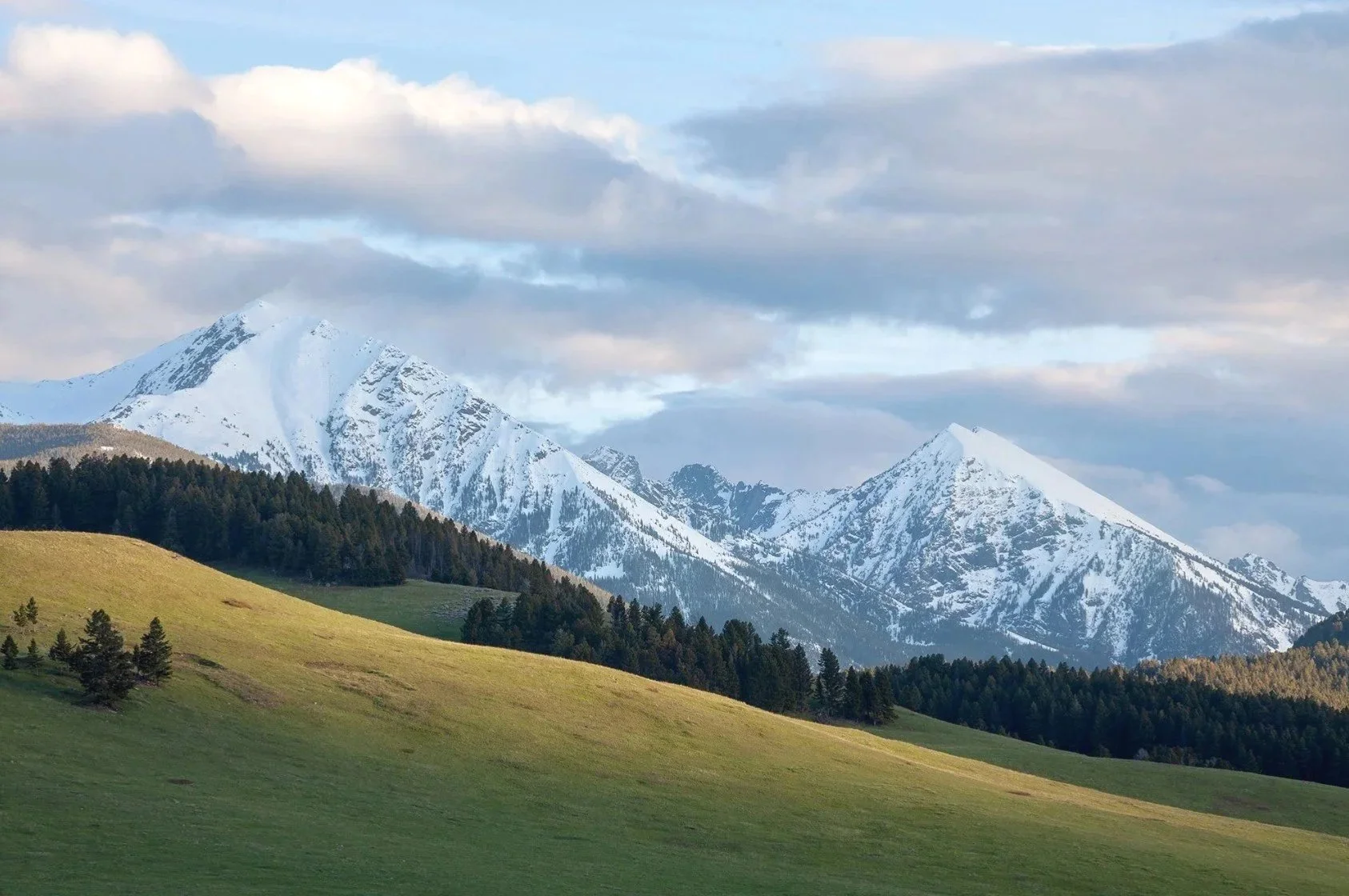 Absaroka Beartooth Mountains and foothills on a beautiful Spring evening near Livingston Montana. Fine art Montana Prints View fullsize