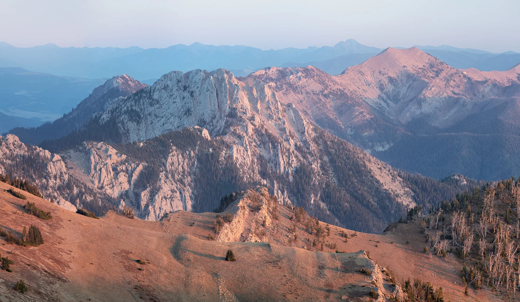 Shown in this photo are two of the more prominent peaks in the middle Bridgers. Ross peak is in the middle left of the image followed by Saddle peak and finally Emigrant peak in the far off distance.